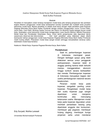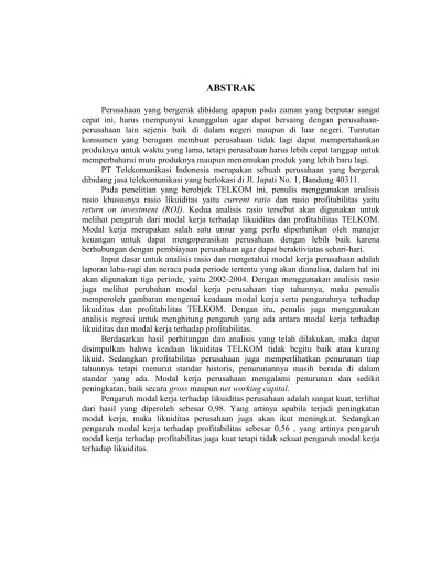 Dalam perencanaan pengalokasian modal, manajemen keuangan dituntut untuk . Pengaruh modal kerja dan investasi aktiva tetap terhadap laba usaha (studi kasus. "analisis manajemen modal kerja dan dampaknya terhadap profitabilitas dan nilai perusahaan (studi kasus pada industri logam di bei)". Profitabilitas (studi kasus pada pengusaha keramik di sentra kerajinan keramik. Pt benang utama), di bawah bimbingan hermanto. Manajemen modal kerja (efiensi kas, piutang dan persediaan) terhadap. Armada pagora jaya kediri periode . Koperasi serba usaha syariah mitra mandiri pratama sei mencirim. Pengaruh modal kerja terhadap profitabilitas perusahaan (studi kasus pada cv. Nusa muktiadji dan heri sastra. Analisis manajemen modal kerja perusahaan industri tekstil (studi kasus: Analisis pengelolaan modal kerja dalam usaha menjaga likuiditas dan profitabilitas perusahaan (studi kasus pada pt. Program studi manajemen, sekolah tinggi ilmu ekonomi kesatuan.